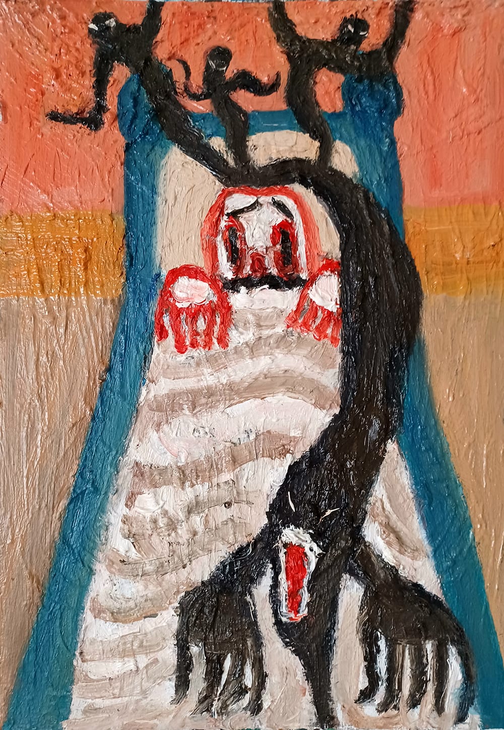 The line between human and animal softens. Figures emerge that are part myth, part instinct, part echo, part longing, holding the strangeness of being many things at once, of remembering a wilder lineage. The work leaves space for divergence and contradiction, for the stray, the singular, and the speculative.